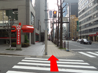 6.1つ目の交差点に東海東京証券の赤い看板が見えます。