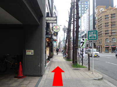 4.5番出口を出ると右手に大きな道路があります。(堺筋)