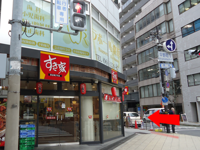 9.次の交差点に、すき家があります。