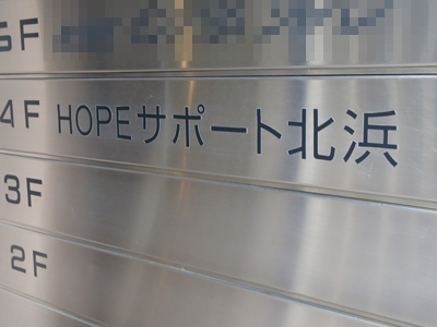 13.HOPEサポート北浜の名前がビルの入り口にあります。